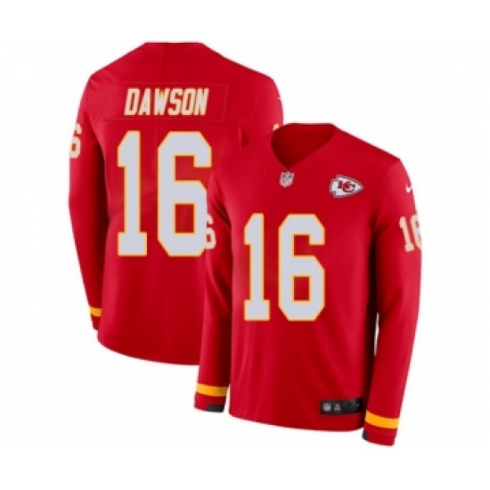 Men's Nike Kansas City Chiefs #16 Len Dawson Limited Red Therma Long Sleeve NFL Jersey