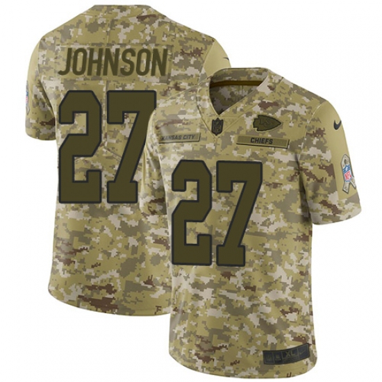 >Men's Nike Kansas City Chiefs #27 Larry Johnson Limited Camo 2018 Salute to Service NFL Jersey