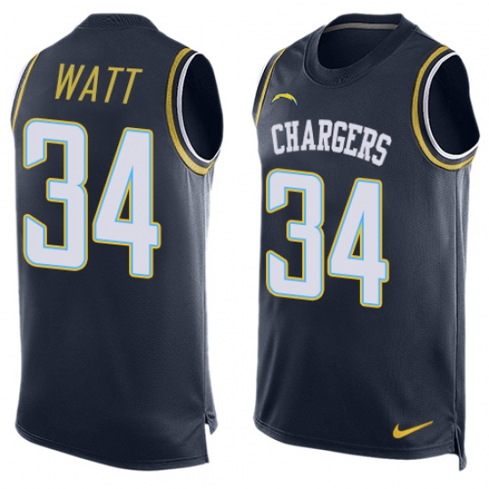 Home>NFL>Los Angeles Chargers>Derek Watt>Men's Nike Los Angeles Chargers #34 Derek Watt Limited Navy Blue Player Name & Number Tank Top NFL Jersey