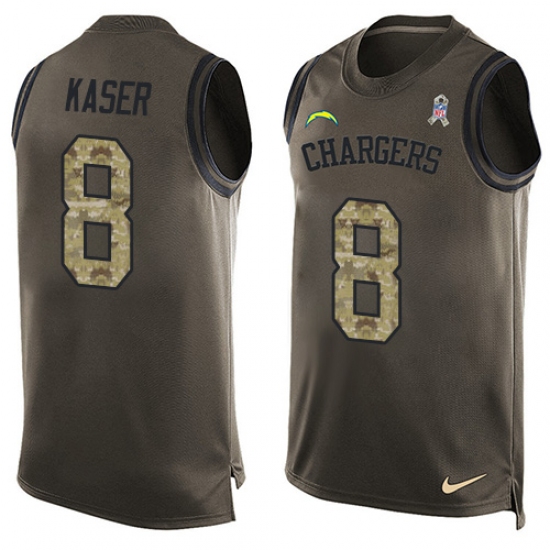 Home>NFL>Los Angeles Chargers>Drew Kaser>Men's Nike Los Angeles Chargers #8 Drew Kaser Limited Green Salute to Service Tank Top NFL Jersey