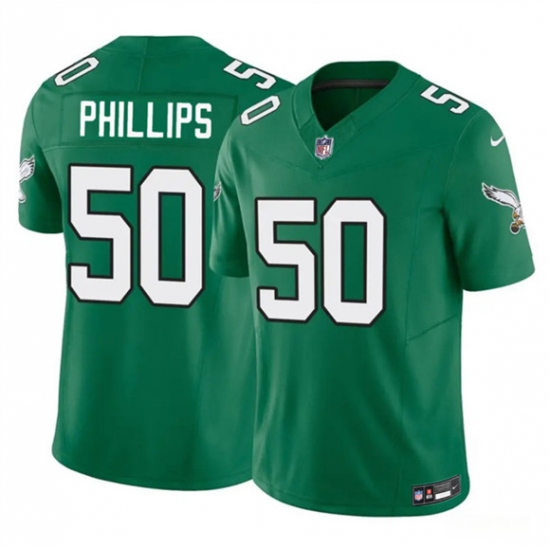 >Men's Philadelphia Eagles #50 Jaelan Phillips Kelly Green 2025 F.U.S.E. Vapor Untouchable Limited Throwback Football Stitched Jersey