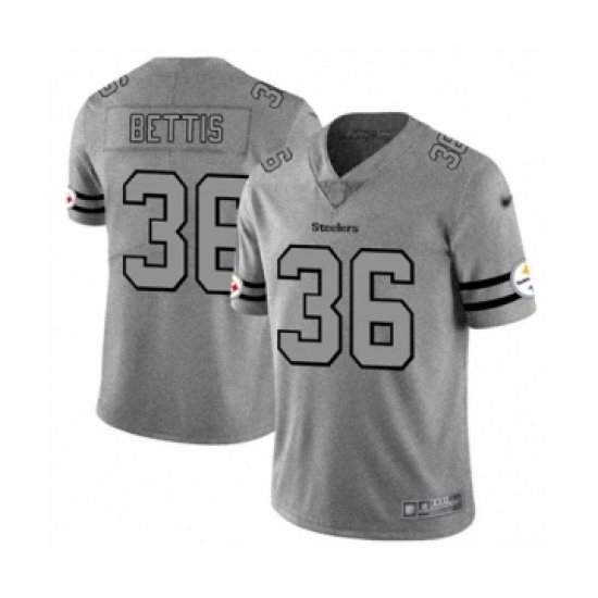 >Men's Pittsburgh Steelers #36 Jerome Bettis Limited Gray Team Logo Gridiron Football Jersey