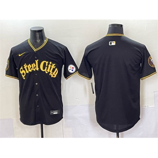 Men's Pittsburgh Steelers Blank Black 412 Vapor Premier Limited Stitched Baseball Jersey (2)