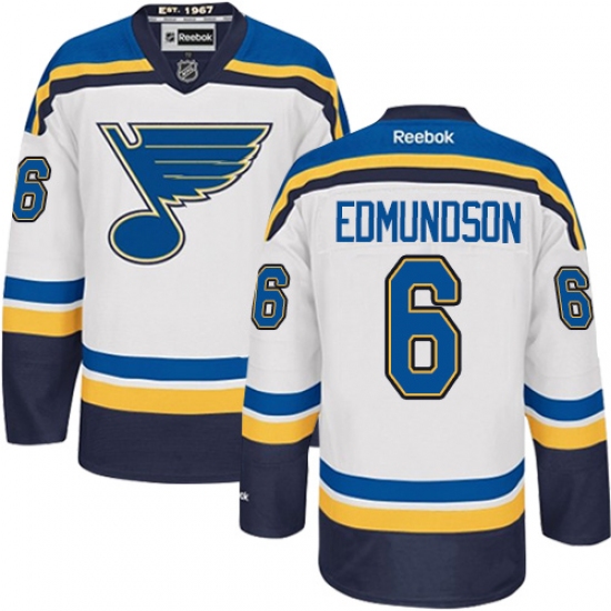 Home>NHL>St. Louis Blues>Joel Edmundson>Men's Reebok St. Louis Blues #6 Joel Edmundson Authentic White Away NHL Jersey