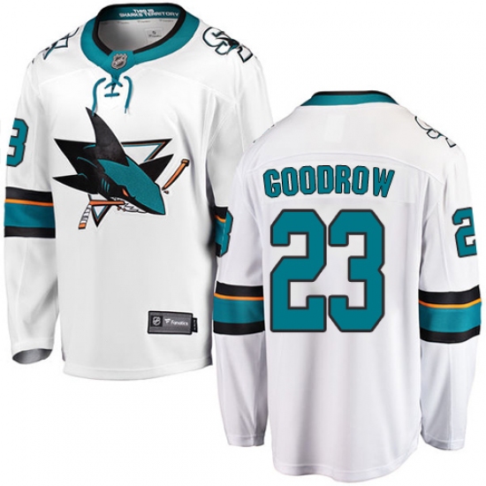 Home>NHL>San Jose Sharks>Barclay Goodrow>Men's San Jose Sharks #23 Barclay Goodrow Fanatics Branded White Away Breakaway NHL Jersey