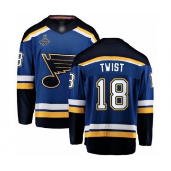>Men's St. Louis Blues #18 Tony Twist Fanatics Branded Royal Blue Home Breakaway 2019 Stanley Cup Champions Hockey Jersey