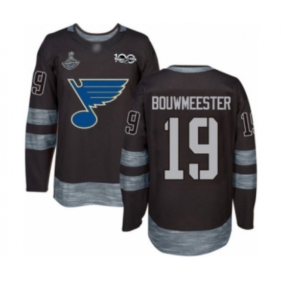 Men's St. Louis Blues #19 Jay Bouwmeester Authentic Black 1917-2017 100th Anniversary 2019 Stanley Cup Champions Hockey Jersey