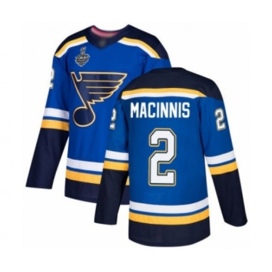 Men's St. Louis Blues #2 Al Macinnis Authentic Royal Blue Home 2019 Stanley Cup Final Bound Hockey Jersey