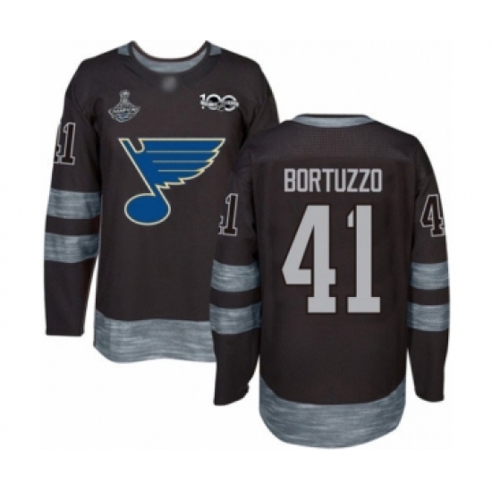 Men's St. Louis Blues #41 Robert Bortuzzo Authentic Black 1917-2017 100th Anniversary 2019 Stanley Cup Champions Hockey Jersey