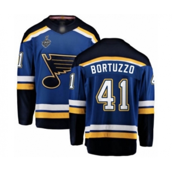 >Men's St. Louis Blues #41 Robert Bortuzzo Fanatics Branded Royal Blue Home Breakaway 2019 Stanley Cup Final Bound Hockey Jersey