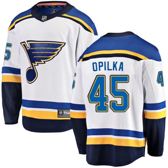 Home>NHL>St. Louis Blues>Luke Opilka>Men's St. Louis Blues #45 Luke Opilka Fanatics Branded White Away Breakaway NHL Jersey