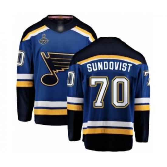 Men's St. Louis Blues #70 Oskar Sundqvist Fanatics Branded Royal Blue Home Breakaway 2019 Stanley Cup Champions Hockey Jersey