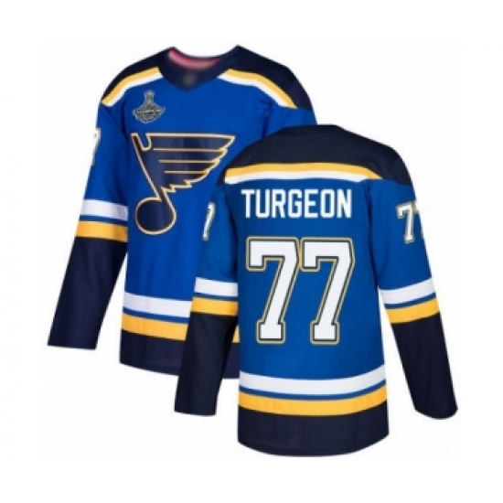 >Men's St. Louis Blues #77 Pierre Turgeon Authentic Royal Blue Home 2019 Stanley Cup Champions Hockey Jersey