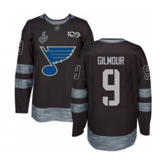 Men's St. Louis Blues #9 Doug Gilmour Authentic Black 1917-2017 100th Anniversary 2019 Stanley Cup Final Bound Hockey Jersey