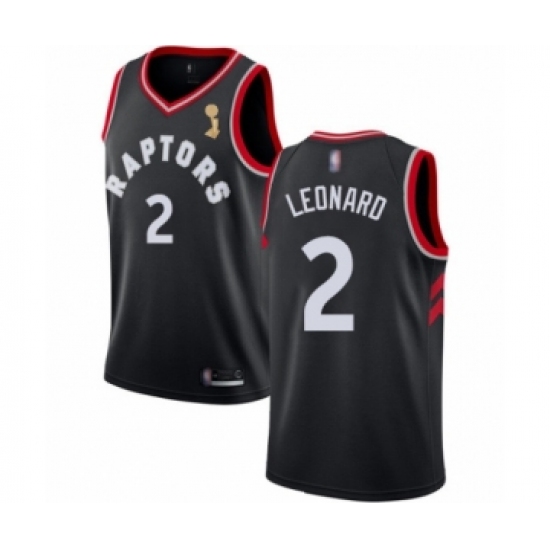 >Men's Toronto Raptors #2 Kawhi Leonard Swingman Black 2019 Basketball Finals Champions Jersey Statement Edition