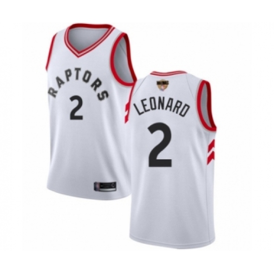 >Men's Toronto Raptors #2 Kawhi Leonard Swingman White 2019 Basketball Finals Bound Jersey - Association Edition