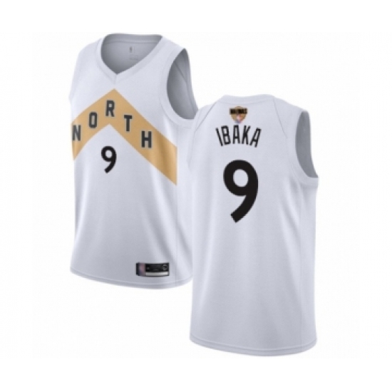 >Men's Toronto Raptors #9 Serge Ibaka Swingman White 2019 Basketball Finals Bound Jersey - City Edition