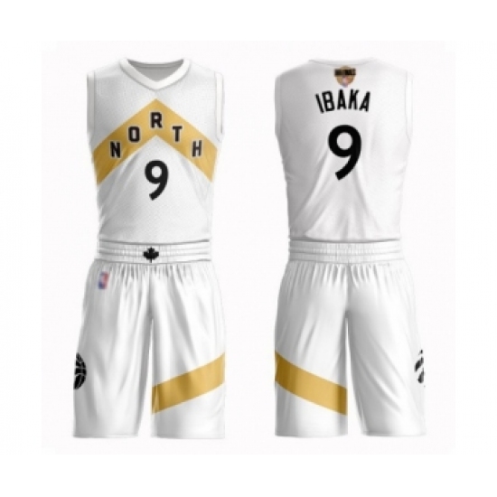 >Men's Toronto Raptors #9 Serge Ibaka Swingman White 2019 Basketball Finals Bound Suit Jersey - City Edition