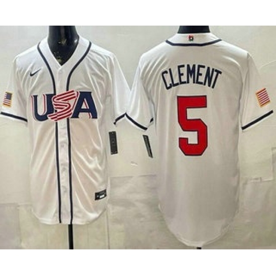 >Men's USA #5 Ernie Clement White 2026 World Baseball Classic Cool Base Jersey