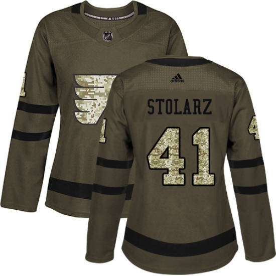 Home>NHL>Philadelphia Flyers>Anthony Stolarz>Women's Adidas Philadelphia Flyers #41 Anthony Stolarz Authentic Green Salute to Service NHL Jersey