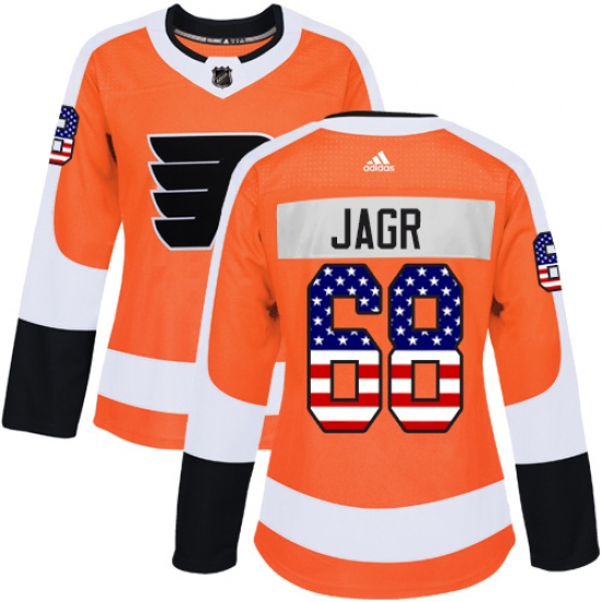 Women's Adidas Philadelphia Flyers #68 Jaromir Jagr Authentic Orange USA Flag Fashion NHL Jersey