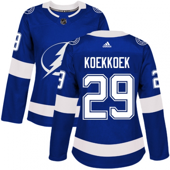Home>NHL>Tampa Bay Lightning>Slater Koekkoek>Women's Adidas Tampa Bay Lightning #29 Slater Koekkoek Authentic Royal Blue Home NHL Jersey