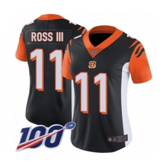 >Women's Cincinnati Bengals #11 John Ross Black Team Color Vapor Untouchable Limited Player 100th Season Football Jersey