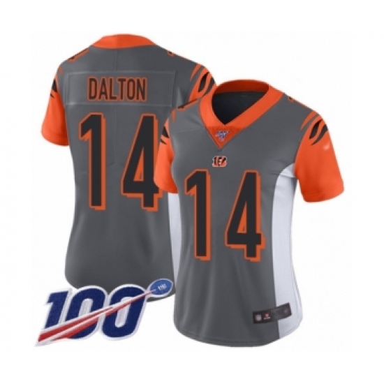 >Women's Cincinnati Bengals #14 Andy Dalton Limited Silver Inverted Legend 100th Season Football Jersey