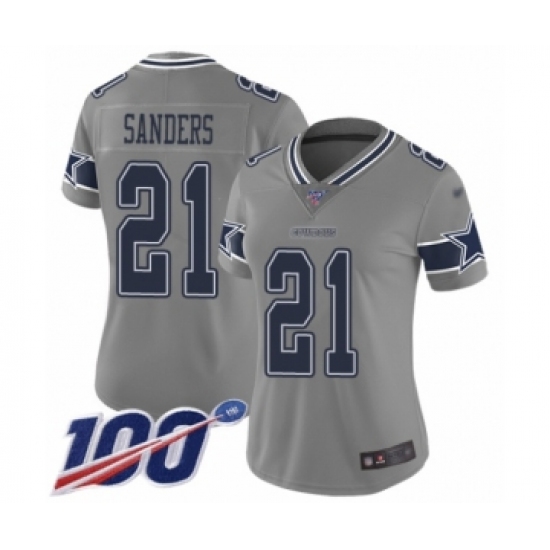 >Women's Dallas Cowboys #21 Deion Sanders Limited Gray Inverted Legend 100th Season Football Jersey