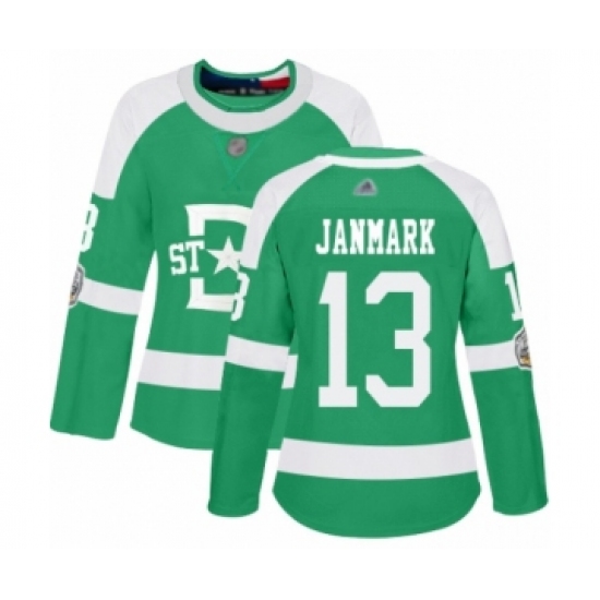 >Women's Dallas Stars #13 Mattias Janmark Authentic Green 2020 Winter Classic Hockey Jersey