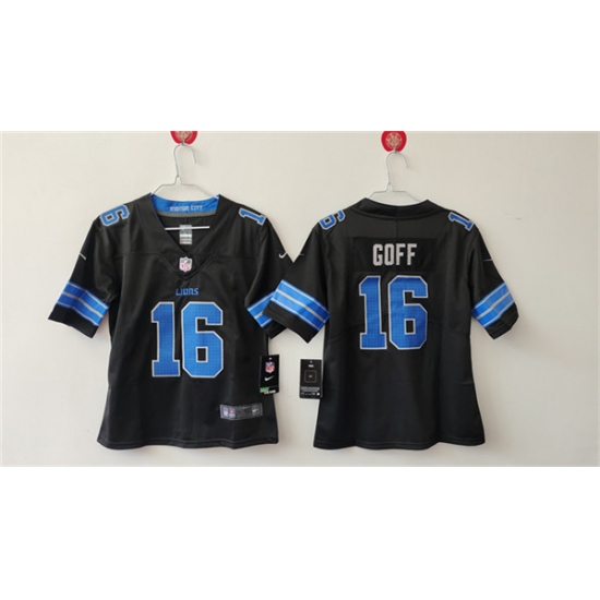 Women's Detroit Lions #16 Jared Goff Black 2nd Alternate Stitched Jersey(Run Smaller)