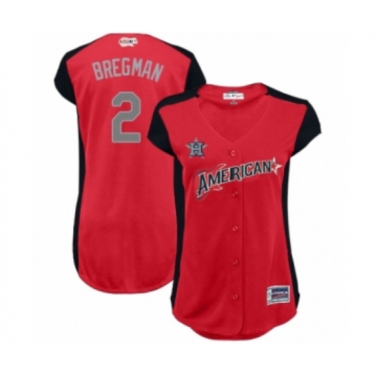 >Women's Houston Astros #2 Alex Bregman Authentic Red American League 2019 Baseball All-Star Jersey