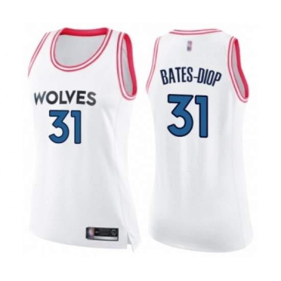 >Women's Minnesota Timberwolves #31 Keita Bates-Diop Swingman White Pink Fashion Basketball Jersey