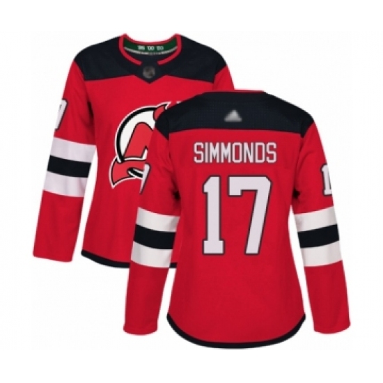 Women's New Jersey Devils #17 Wayne Simmonds Authentic Red Home Hockey Jersey
