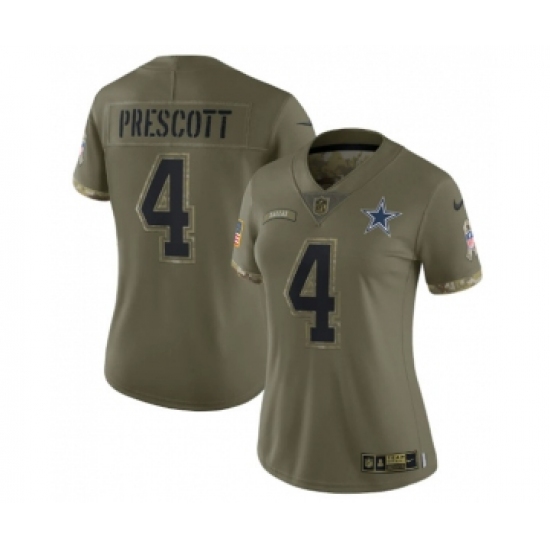 Women's Nike Dallas Cowboys #4 Dak Prescott 2022 Olive Salute To Service Limited Stitched Jersey