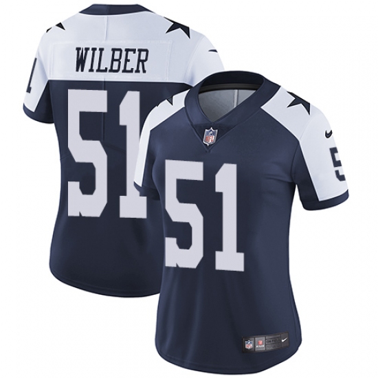 Women's Nike Dallas Cowboys #51 Kyle Wilber Navy Blue Throwback Alternate Vapor Untouchable Limited Player NFL Jersey