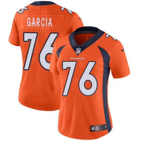 Home>NFL>Denver Broncos>Max Garcia>Women's Nike Denver Broncos #76 Max Garcia Orange Team Color Vapor Untouchable Limited Player NFL Jersey