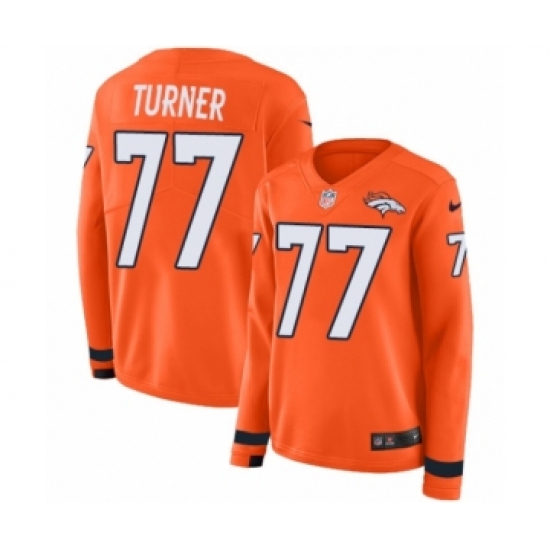 >Women's Nike Denver Broncos #77 Billy Turner Limited Orange Therma Long Sleeve NFL Jersey