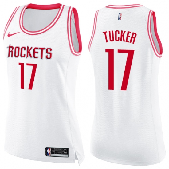 >Women's Nike Houston Rockets #17 PJ Tucker Swingman White Pink Fashion NBA Jersey