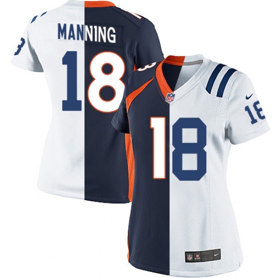 Women's Nike Indianapolis Colts #18 Peyton Manning Elite White/Navy Blue Split Fashion NFL Jersey