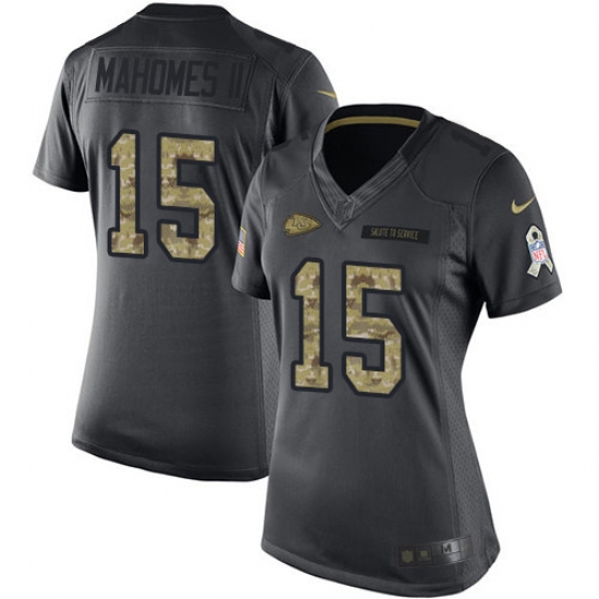 Home>NFL>Kansas City Chiefs>Patrick Mahomes II>Women's Nike Kansas City Chiefs #15 Patrick Mahomes II Limited Black 2016 Salute to Service NFL Jersey