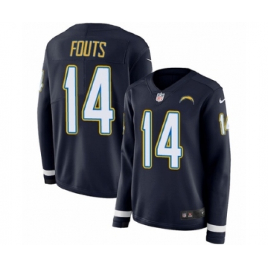 >Women's Nike Los Angeles Chargers #14 Dan Fouts Limited Navy Blue Therma Long Sleeve NFL Jersey