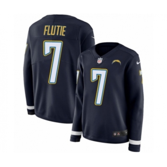 >Women's Nike Los Angeles Chargers #7 Doug Flutie Limited Navy Blue Therma Long Sleeve NFL Jersey