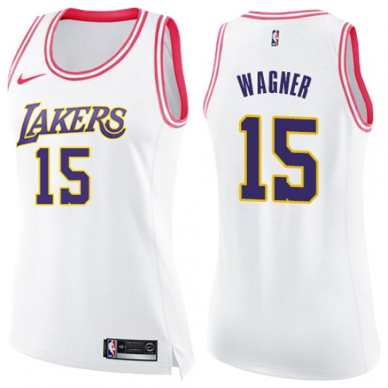 >Women's Nike Los Angeles Lakers #15 Moritz Wagner Swingman White Pink Fashion NBA Jersey