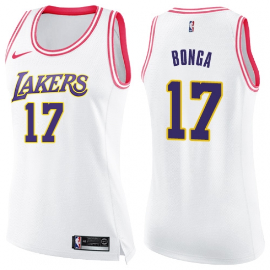 Women's Nike Los Angeles Lakers #17 Isaac Bonga Swingman White Pink Fashion NBA Jersey
