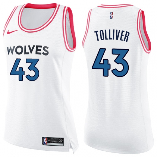 Women's Nike Minnesota Timberwolves #43 Anthony Tolliver Swingman White Pink Fashion NBA Jersey