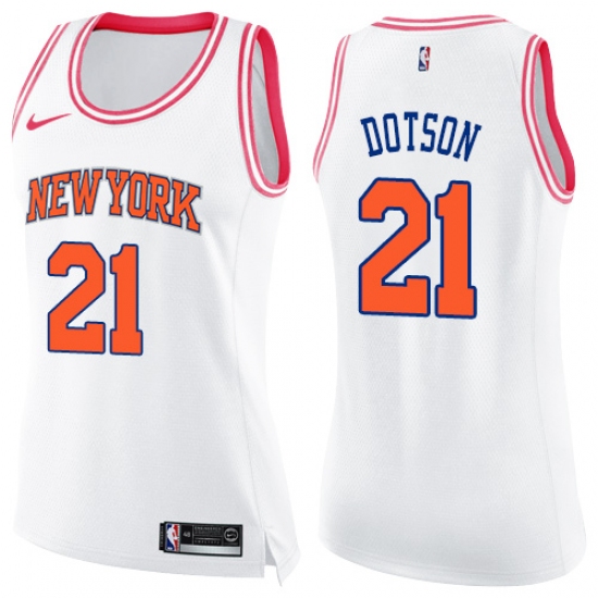 Women's Nike New York Knicks #21 Damyean Dotson Swingman White Pink Fashion NBA Jersey