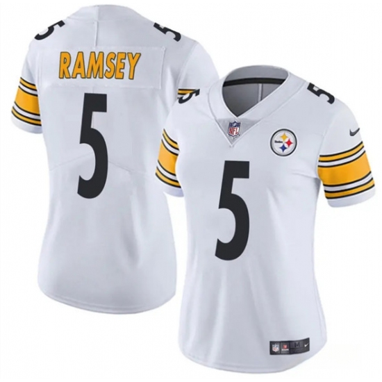 Women's Pittsburgh Steelers #5 Jalen Ramsey White 2025 Vapor Untouchable Limited Football Stitched Jersey(Run Small)