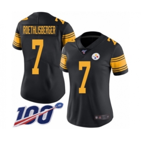 Women's Pittsburgh Steelers #7 Ben Roethlisberger Limited Black Rush Vapor Untouchable 100th Season Football Jersey