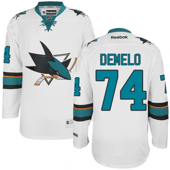 Home>NHL>San Jose Sharks>Dylan DeMelo>Women's Reebok San Jose Sharks #74 Dylan DeMelo Authentic White Away NHL Jersey